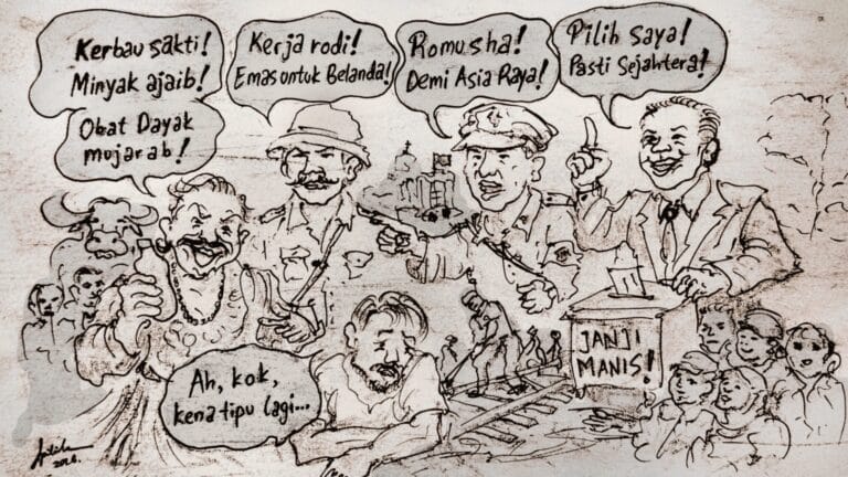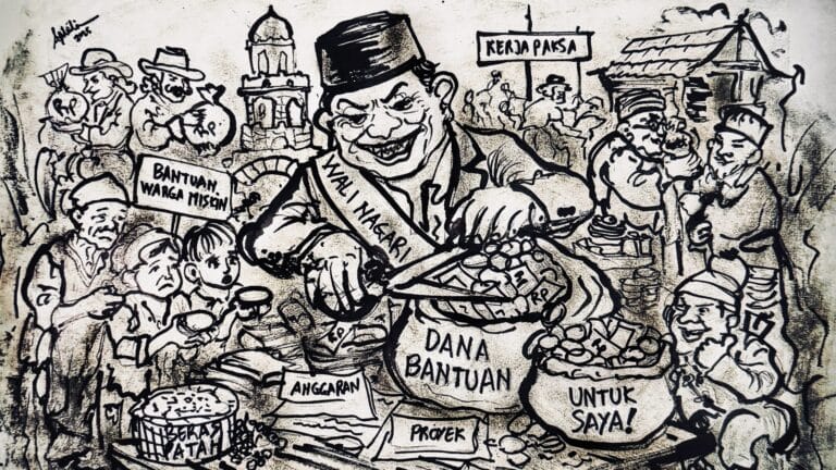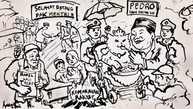 Sebuah candaan fiqih tentang hukum makanan haram mendadak berubah menjadi kritik sosial tajam saat seorang ustad berteriak, “Anjing, Pak Bupati! Babi, Pak Camat!” di hadapan pejabat yang hadir. Meski diniatkan sebagai humor pemancing tawa, jemaah justru memaknainya sebagai peluapan kemuakan terhadap kekuasaan yang abai pada rakyat.