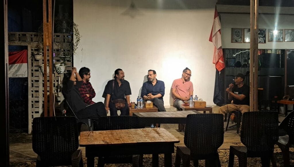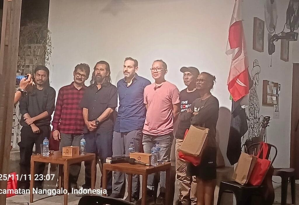 Ribut sekali malam itu. Seng penutup “ruang temu” tempat diskusi di Steva, dihajar hujan deras. Padahal, diskusi langka akan terjadi sesaat lagi, Selasa malam, 11 November 2025 itu. Kota Padang didatangi dramaturg kelas dunia, Kai Tuichmann. Bersama Ibed S. Yuga, Wendy HS, Mahatma Muhammad, dan Tatang R. Macan. Tema ‘Postdramatik’ akan dikubak lapis per lapis dengan moderator Thendra BP.