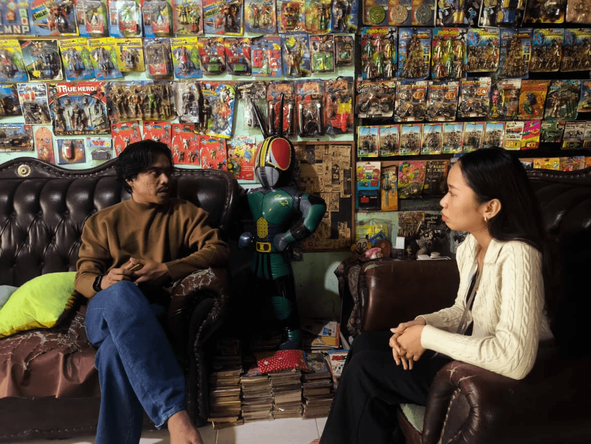 “Silakan duduk,” gerak tangan Valdo menunjuk karpet berwarna terracotta di sebelah kiri begitu masuk ke dalam galeri. Buku-buku lama tampak disusun bersandar ke dinding di bawah jendela. Berbagai macam bacaan dari majalah bobo sampai cerita azab kubur terlihat dirawat dengan baik.