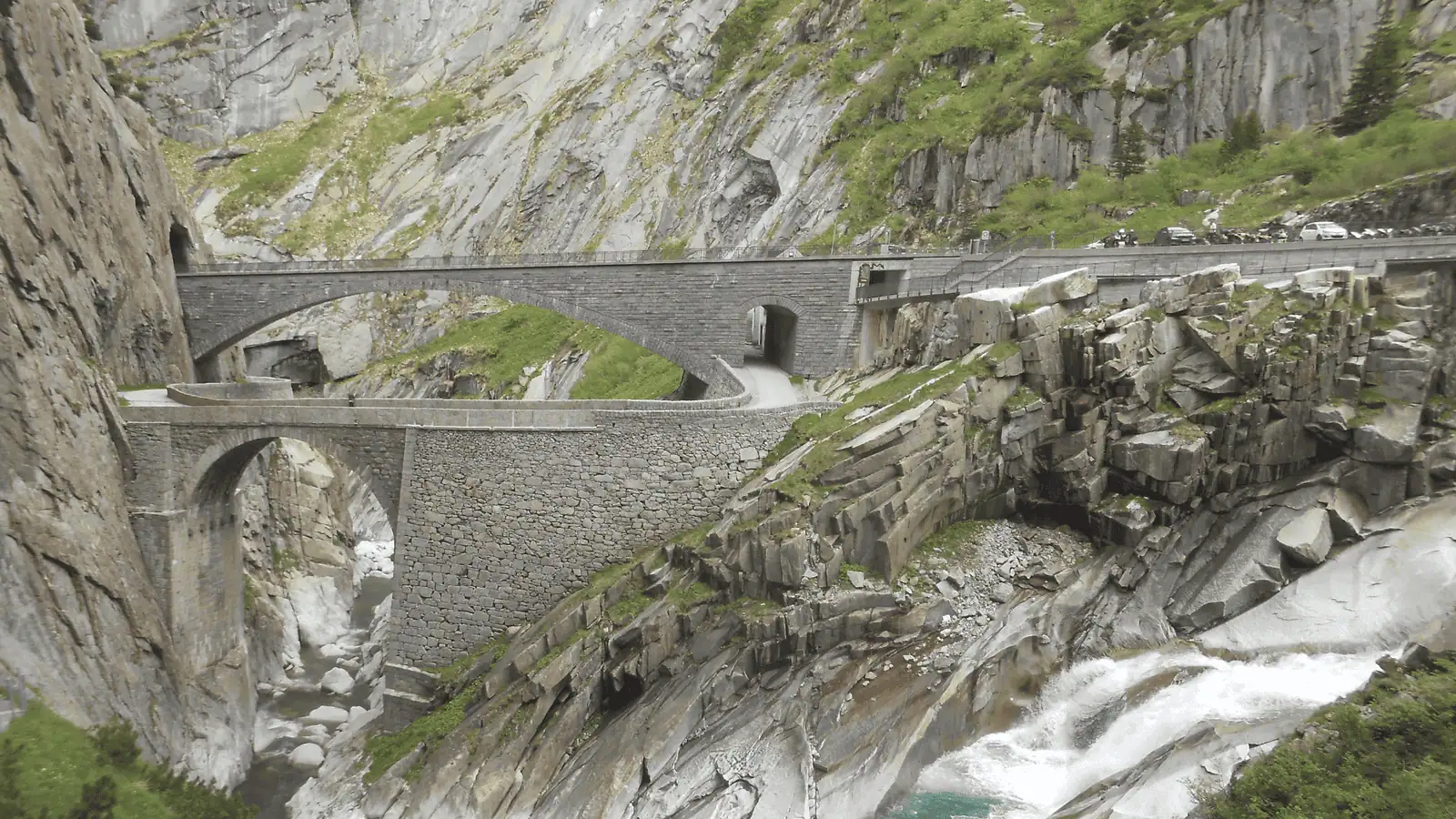 Pada 1595 jembatan kayu itu digantikan dengan jembatan batu yang kini dikenal sebagai Jembatan Setan. Kini, di tempat itu terdapat jalur penyeberangan lain, termasuk sebuah jalan terowongan menembus gunung batu sepanjang 60 meter yang dibangun oleh Pietro Morettini pada awal abad ke-18 dan kini dikenal sebagai Urnerloch atau “Lorong Uri”. Ini merupakan terowongan pertama yang dibangun menembus pegunungan Alpen.