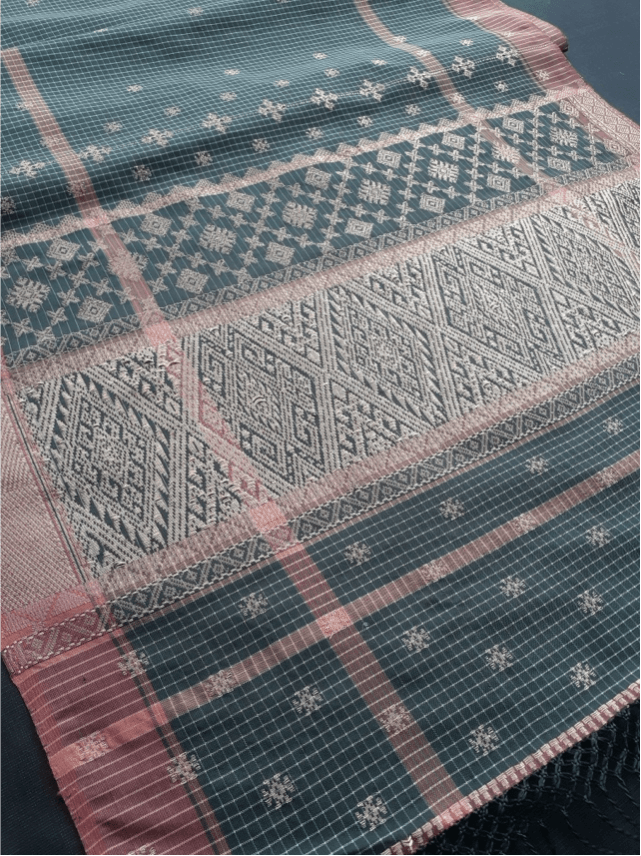 Nah, karena itu prosesnya bisa memakan waktu hingga enam bulan untuk menenun kain ini. Pada bagian utama terdapat jalinan benang sutera berwarna-warni yang menghiasi motif salapah besar.